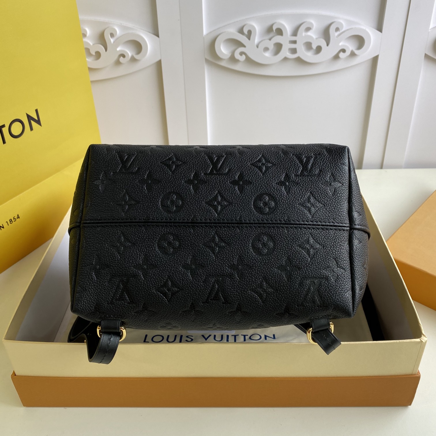 The M Montsouris backpack, which was introduced in 1994, wears Monogram Empreinte embossed leather, embellished with retro metal buckles and LV ornaments. Zippered outer pockets provide easy access and placement, and adjustable shoulder straps provide a comfortable shoulder-back experience.