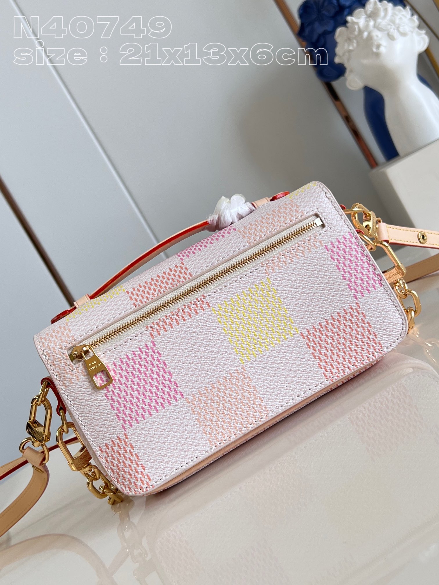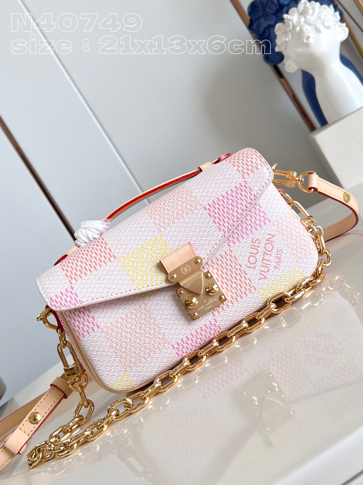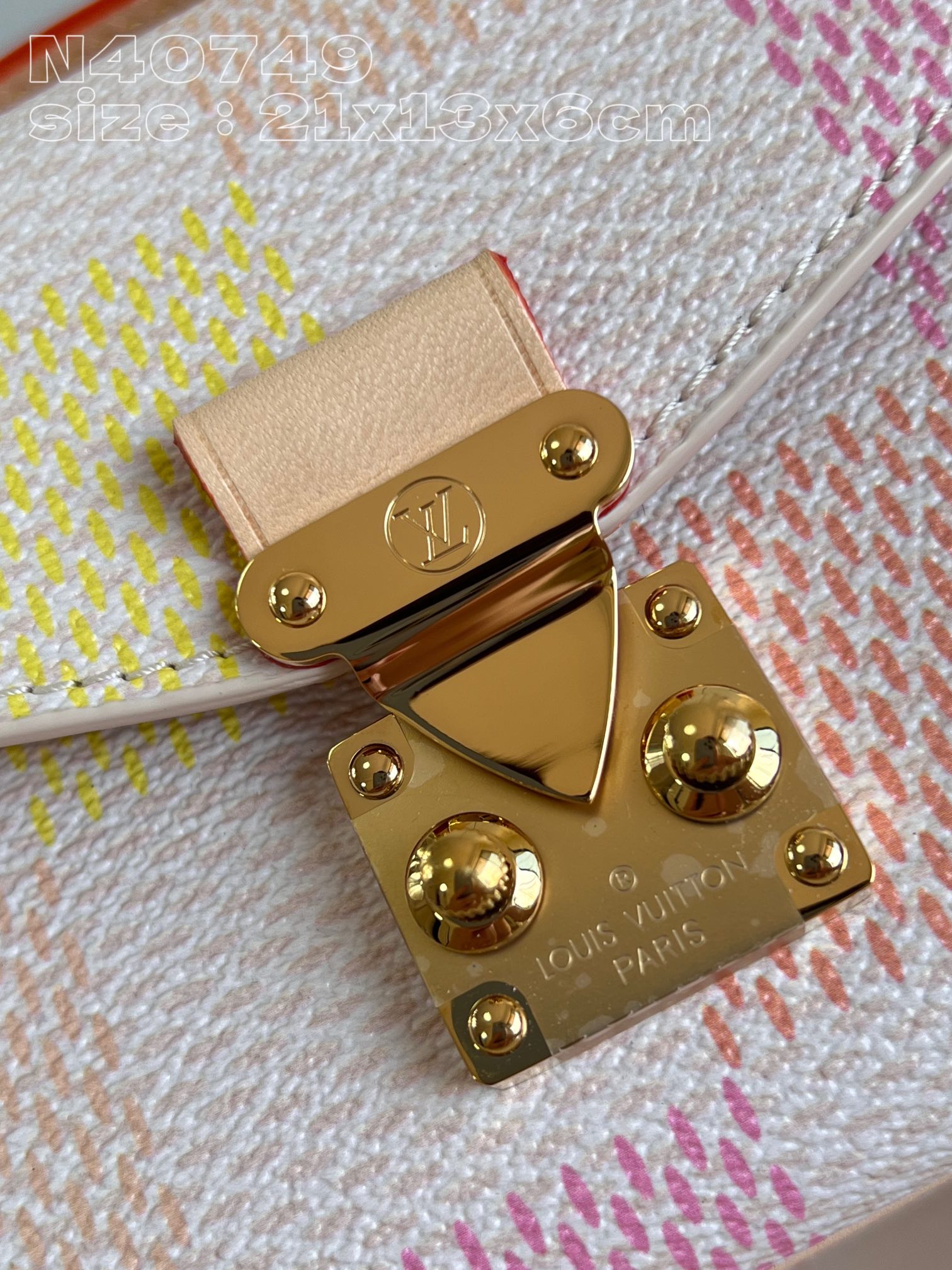[Exclusive real shot N40749] Chip version This Pochette Métis East West handbag is from the Damierlicious collection and is dyed in pastel tones for Damier Giant canvas. The trendy configuration features a neat inner layer and S-lock latch. The short chain and adjustable leather shoulder strap are detachable. 21.5 x 13.5 x 6 centimeters (length x height x width)