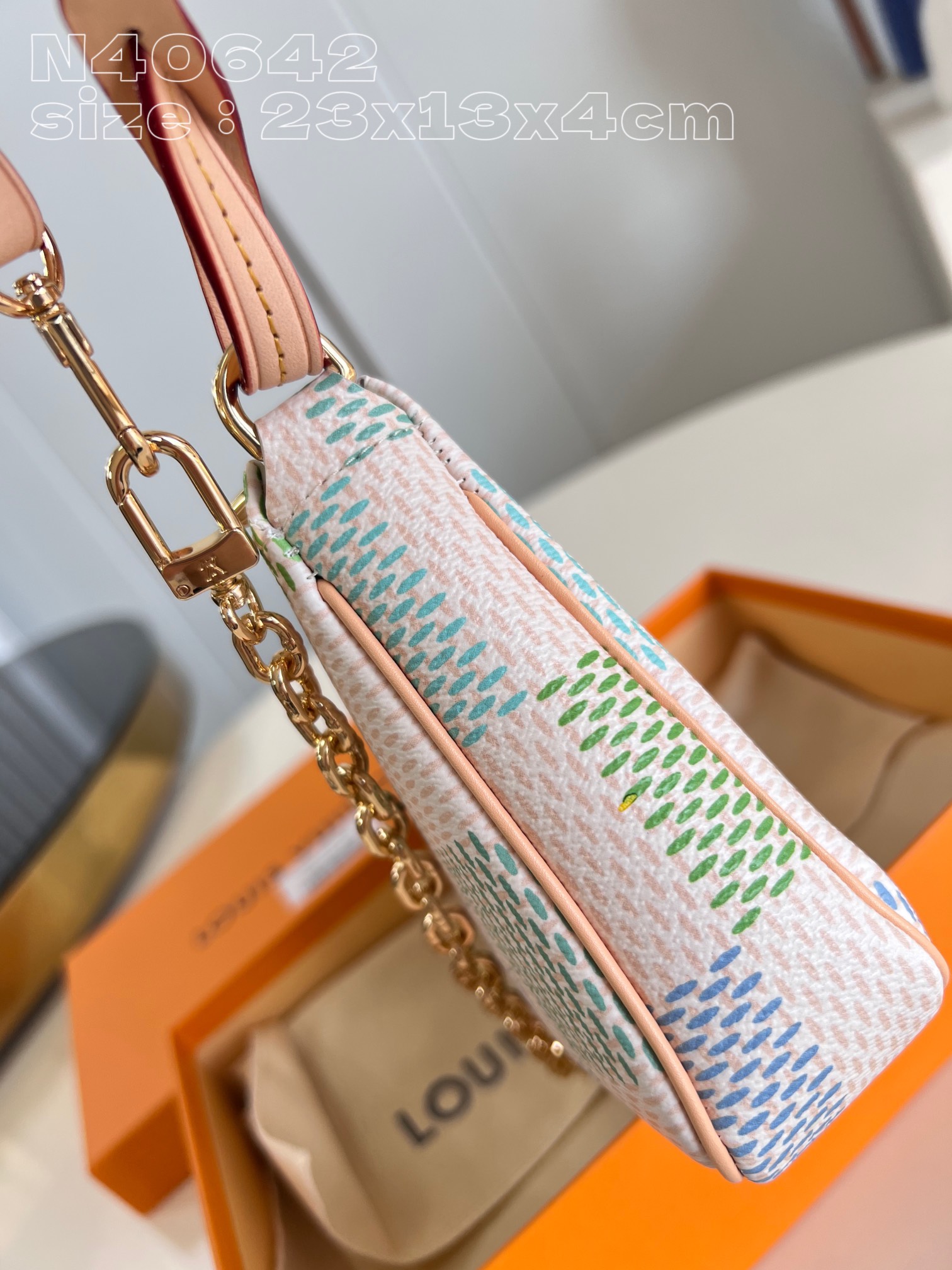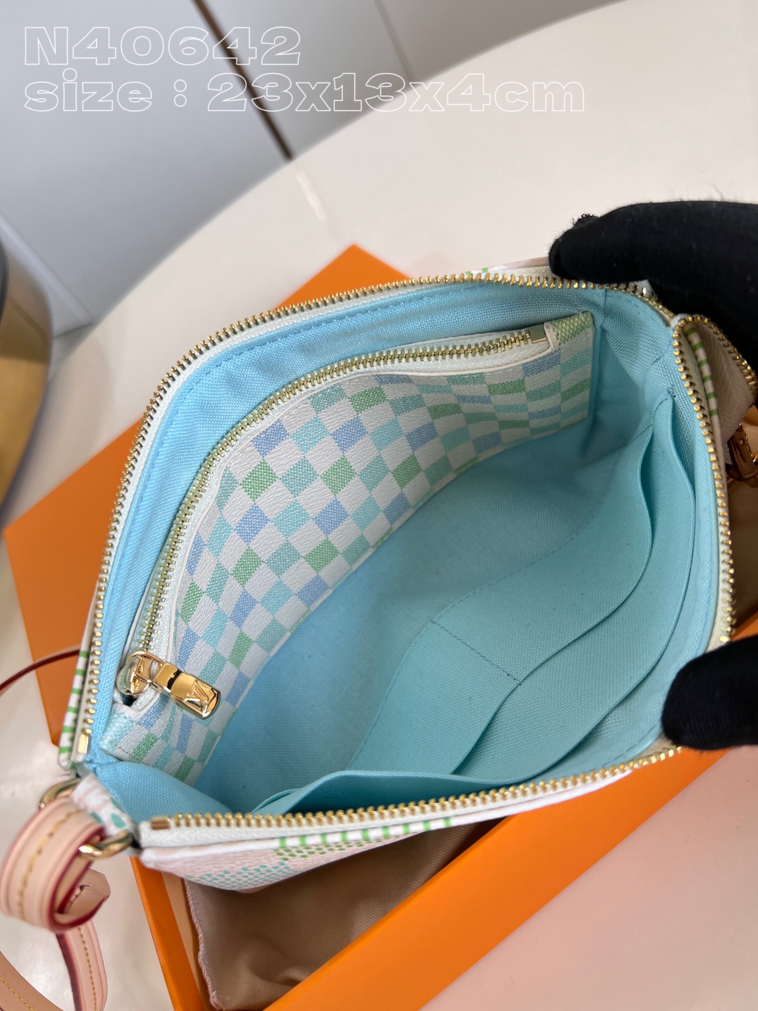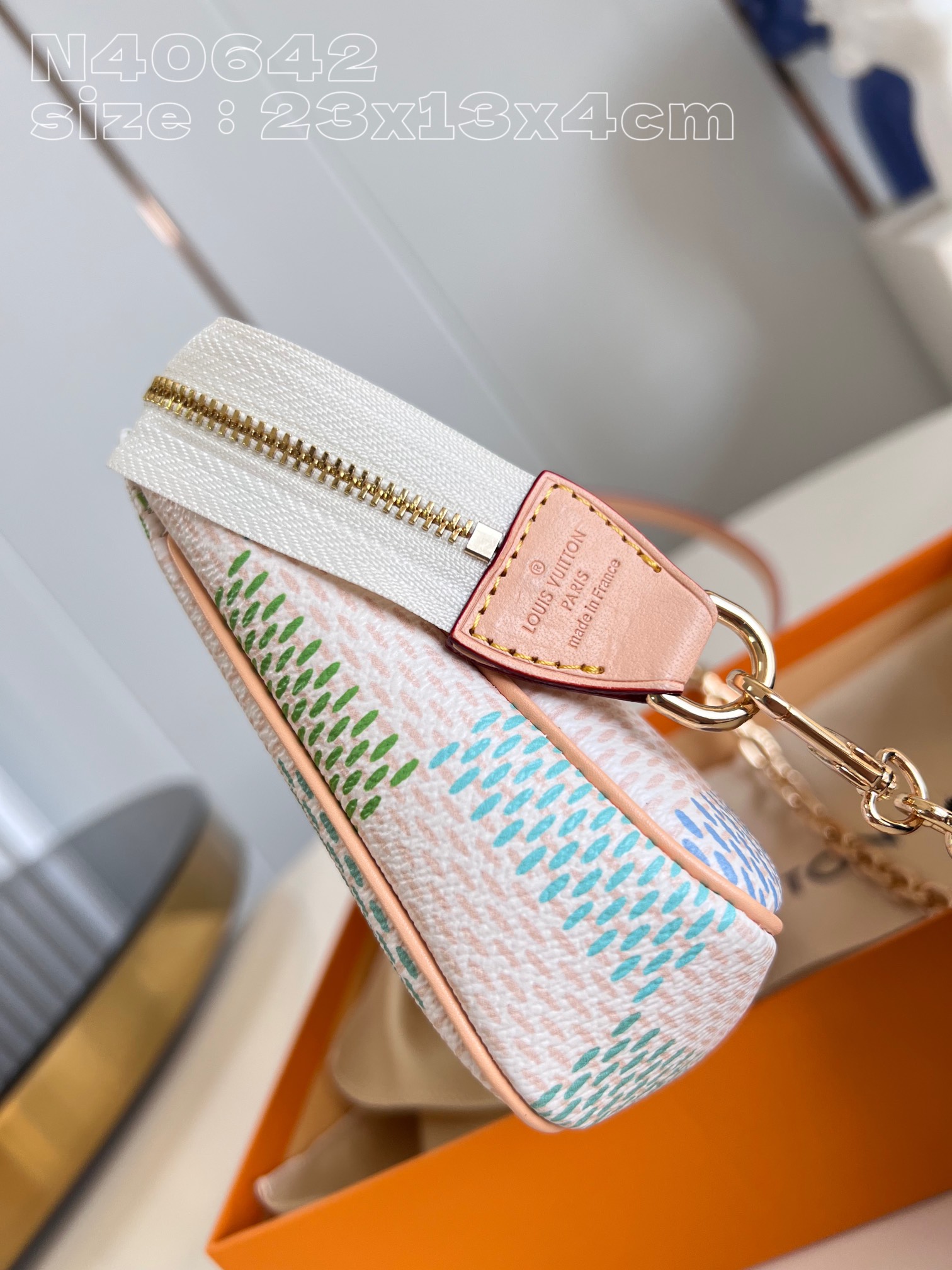 [Exclusive real shot of N40642 blue] This Pochette Accessoires handbag is from the Damierlicious collection. Damier canvas bag is dyed in soft tones. The trim is cut from Louis Vuitton classic leather. Gently open the zipper to see the large compartments, pockets and card compartments. Pair it with detachable leather shoulder straps and eye-catching chains to change the way you carry it on your back for various styles. 23.5 x 13.5 x 4 cm (length x height x width)