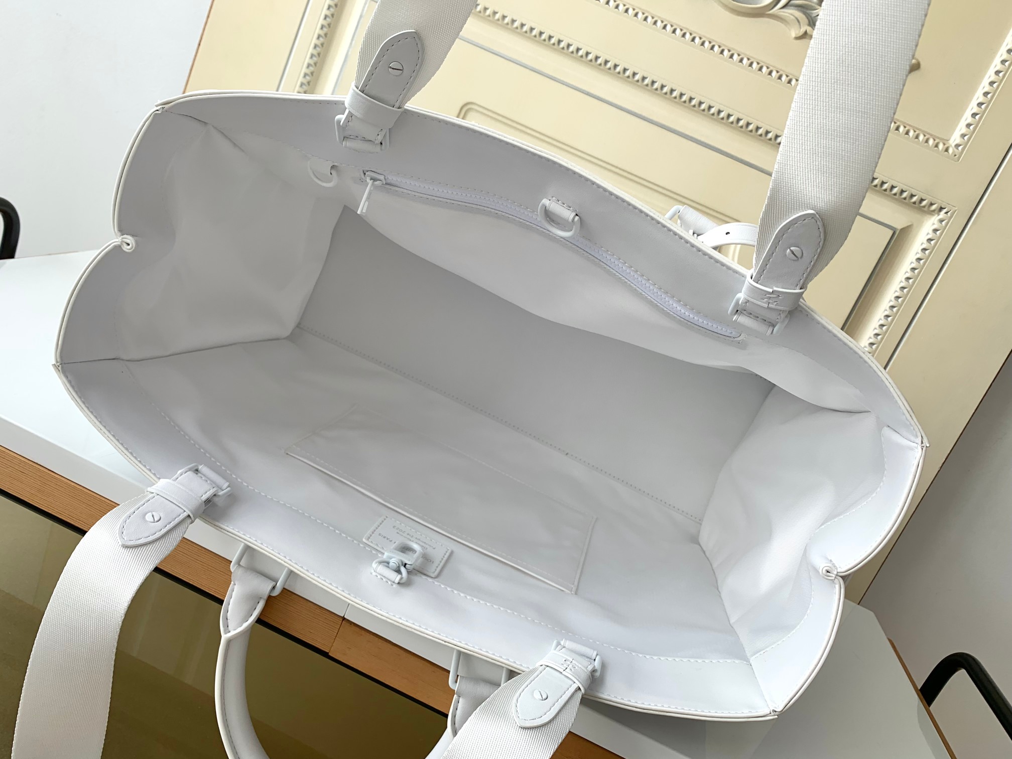 [Haiyuan Outer Single and Solid Home Photo] 21841 white M44964 black top-level original order This Sac Plat handbag comes from the LV Oranges series. The cow leather embossing is like the grand embossed of a French country estate in the 18th century. Ample main compartments feature pockets, top handles and long shoulder straps for multiple back carrying options.