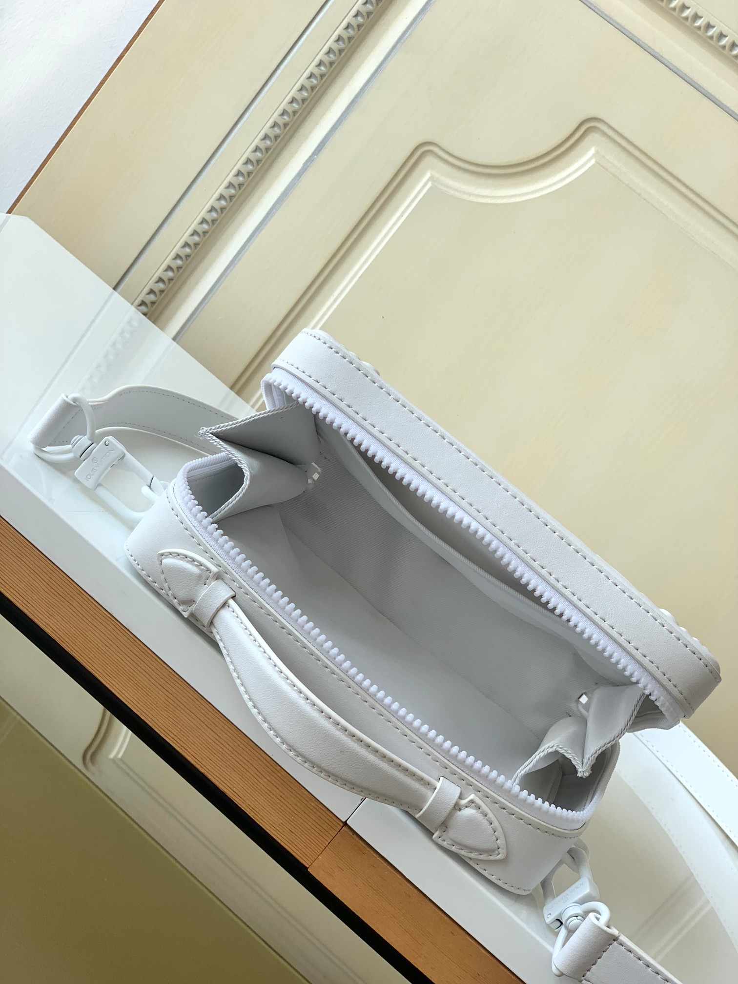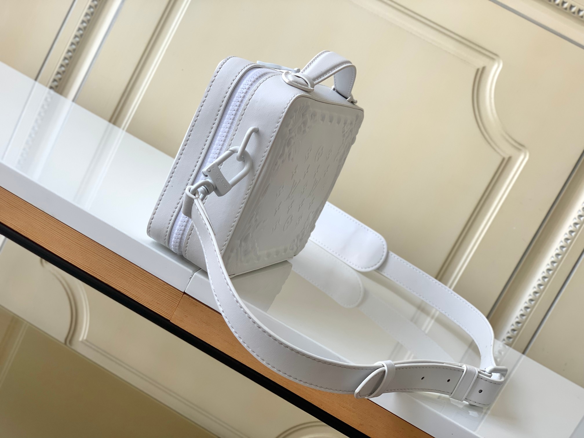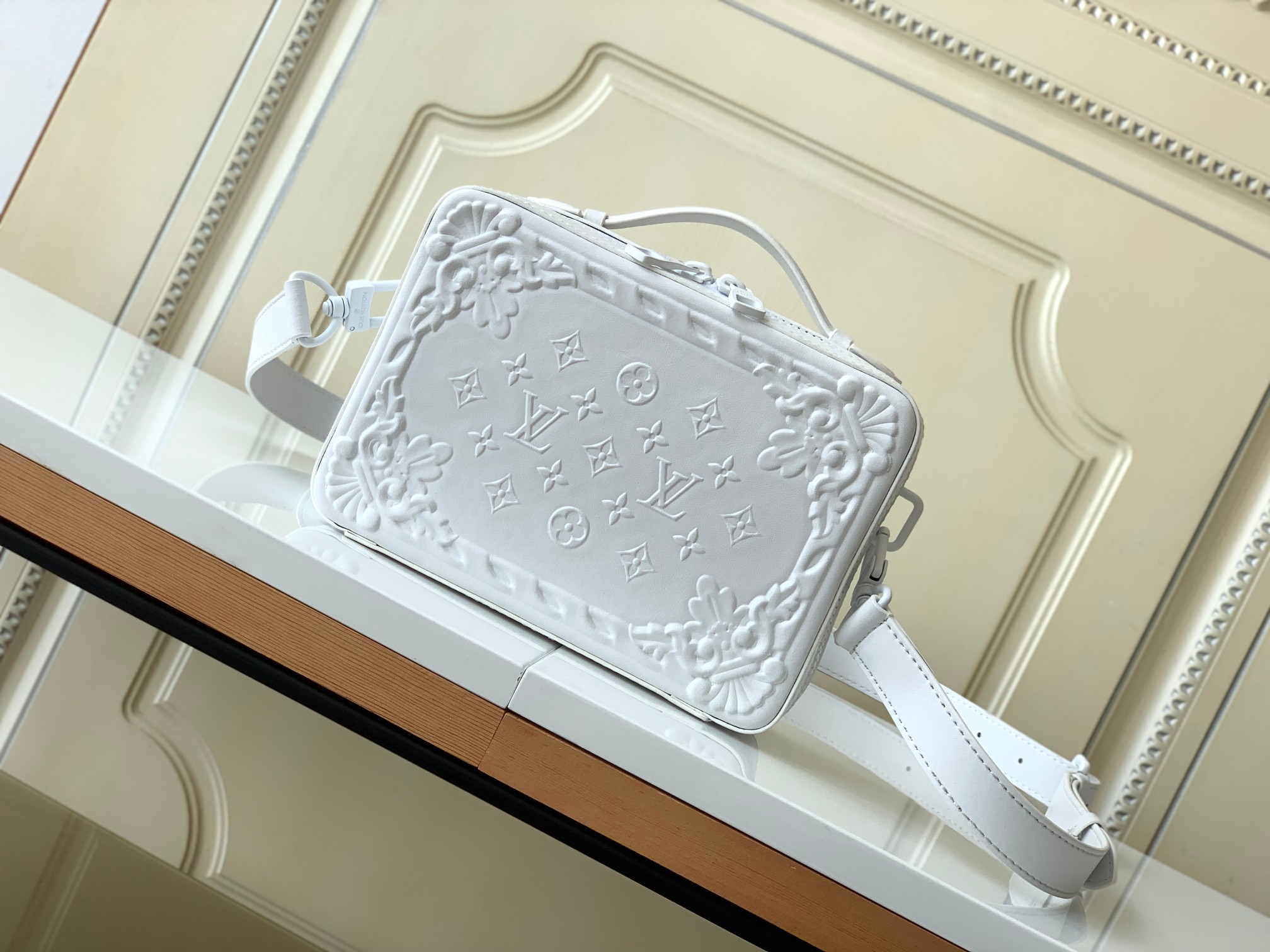[Haiyuan Outer Single and Solid Home Photo] M21833 White M44965 Black Handle Soft Trunk handbag is from the LV Oranges series. It is embossed with cow leather to copy the gorgeous embossed of a French castle in the 18th century. Use top handles and detachable shoulder straps to explore more creative styling possibilities. 21.5 x 15.0 x 7.0 cm (L x H x W) · cow leather · Cattle leather trim · fabric lining · metal piece · Front sticker bag · inner sticker bag · Shoulder strap: removable, adjustable · Half length of belt: 44.5 cm · Half-length adjustable to: 58.0 cm · Handle: Single handle