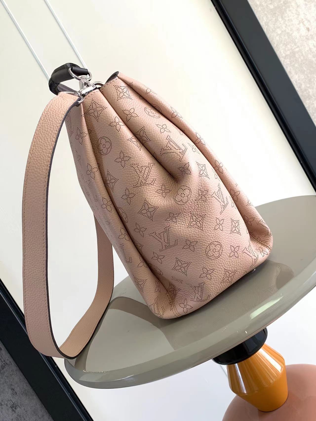 ! The M50031 M50032Babylone handbag uses an upgraded version of Mahina calfskin, and the fine engraving is fashionable and low-key. Fabulous details such as woven handles, contrasting color trimmings, fashionable colors and new lines make Babylone pleasing to the eye. The space inside the bag is surprisingly spacious, and this soft handbag is equally comfortable whether it is carried on the elbow or on the shoulder. size 32X40X19cm
