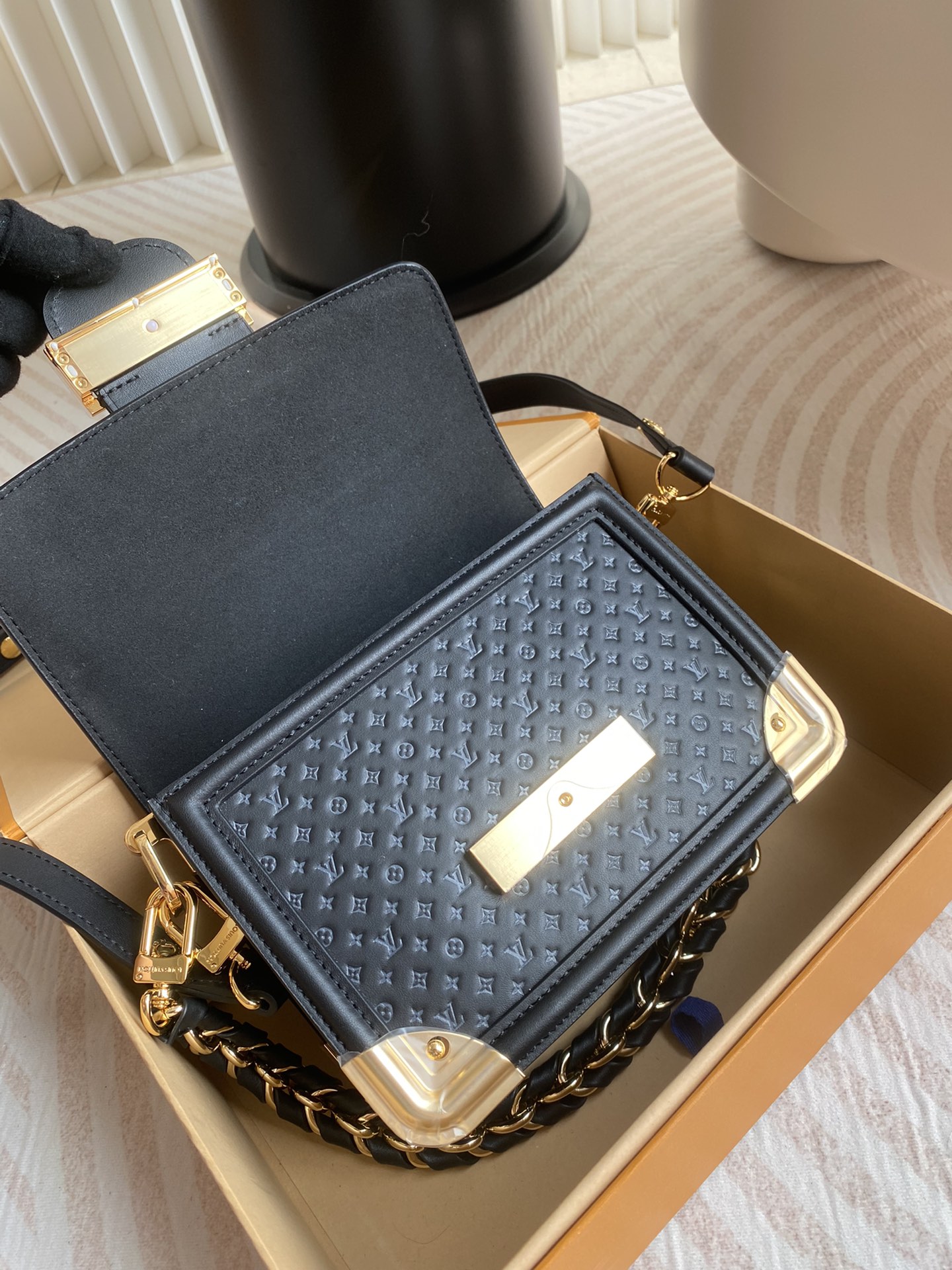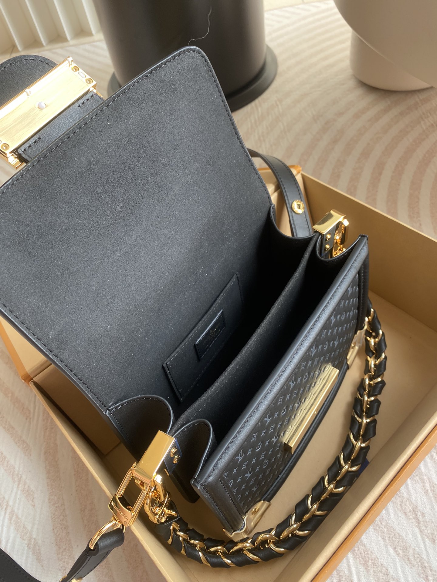 Top original order! ! Dauphine mini handbag M22597 Black The Dauphine mini handbag is made of embossed cowhide leather and is decorated with Nanogram’s special series of iconic mini versions of Monogram patterns. Silk-screen L* letter logos and Monogram floral patterns present a gentle contrasting color effect. Metal pieces such as the L*Circle logo are lustrous metallic shiny bread horns and sharp brackets show the road’s DNA. size: 20x15x9cm